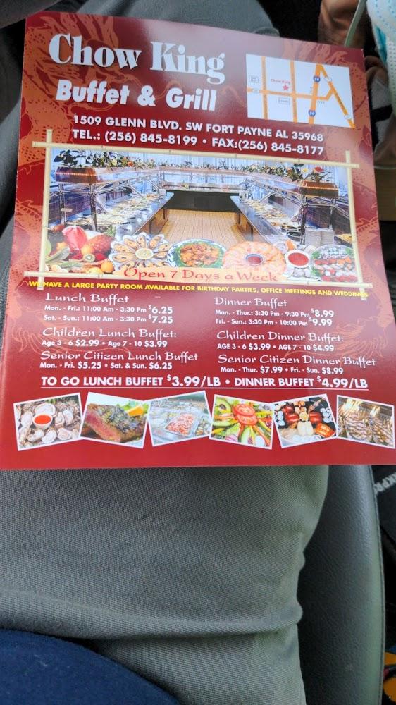 Welcome to Chow King Buffet & Grill, your premier destination for delicious Chinese cuisine in Fort Payne, AL! Located at 1509 Glenn Blvd SW, we offer a diverse buffet selection along with a cozy dining atmosphere perfect for lunch, dinner, or a solo meal. Enjoy the convenience of delivery and takeout, along with a menu accommodating vegetarians and featuring healthy options. Our accessible facilities ensure a comfortable experience for everyone. With a focus on quality, service, and a great variety of teas, Chow King Buffet & Grill is an ideal spot for families, students, and groups alike. Join us for a delightful meal today!